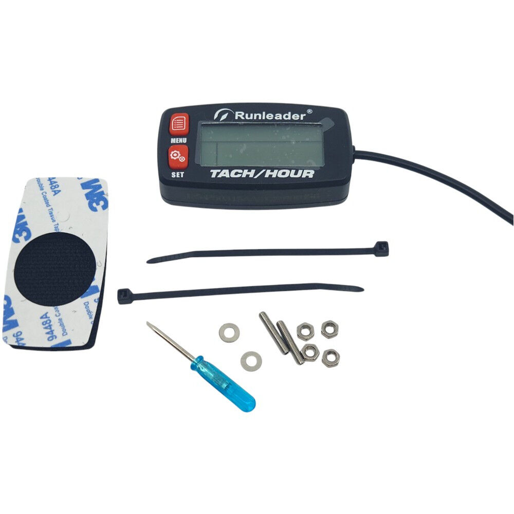 Runleader tachometer is a device to measure the gas engine working time and real-time RPM value, which detected signal by spark plug. Multi-coloured backlights remind the RPM or maintenance period status, Program the initial hours to replace an old hour meter, User shutdown can be save the battery lifetime with data retained, Waterproof design can be used for any external bad conditions.